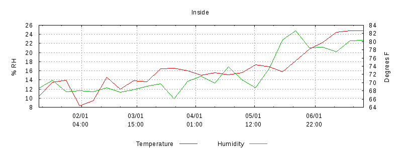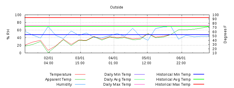 © Copyright 2004-2011 Robert Creager. All Rights Reserved. weather/gnuplot/weekly.html last modified 14:22:22 07-Jun-2009